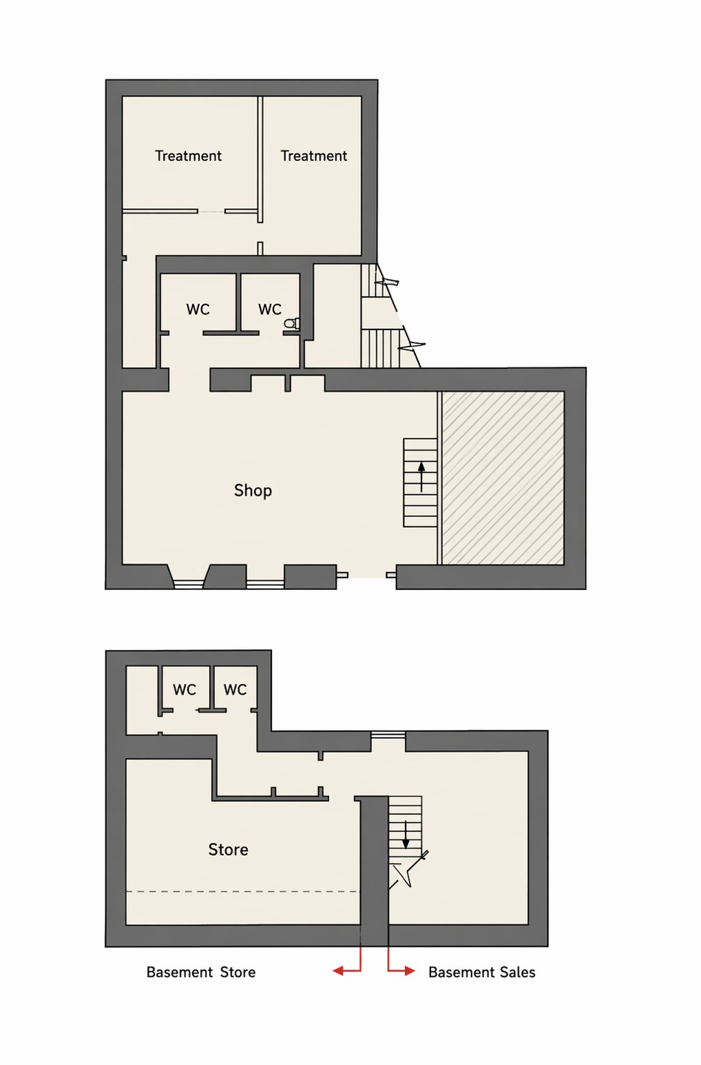 The property comprises a well-presented and fully refurbished commercial unit arranged over ground and lower ground levels. The accommodation is currently configured to provide an attractive open plan salon/retail area, together with private treatment rooms and ancillary space.
